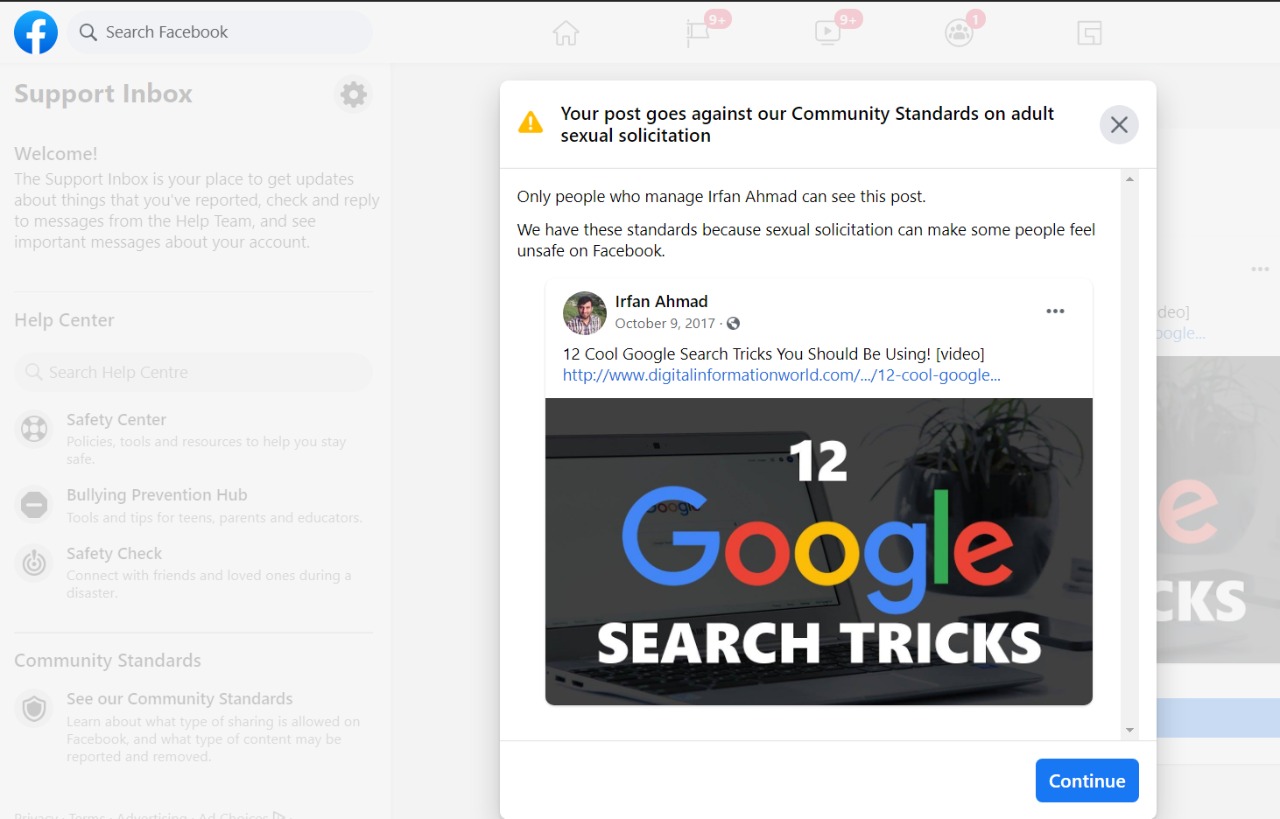 Facebook users are complaining on several social networking forums about their posts being taken down and them receiving warnings for posting inappropriate, suggestive or otherwise negative/adult content even though their content didn’t actually contain any such materials. This is a clear problem in Facebook’s algorithm, and it’s one that is really harming the overall users and businesses experience that people are hoping they would be able to rely on all in all. Some users are even getting their accounts suspended over false allegations of posting inappropriate content, and when these users complain to Facebook they are often forced to make do with responses that are vague at best and don’t really involve any kind of actual understanding of the problem at hand.