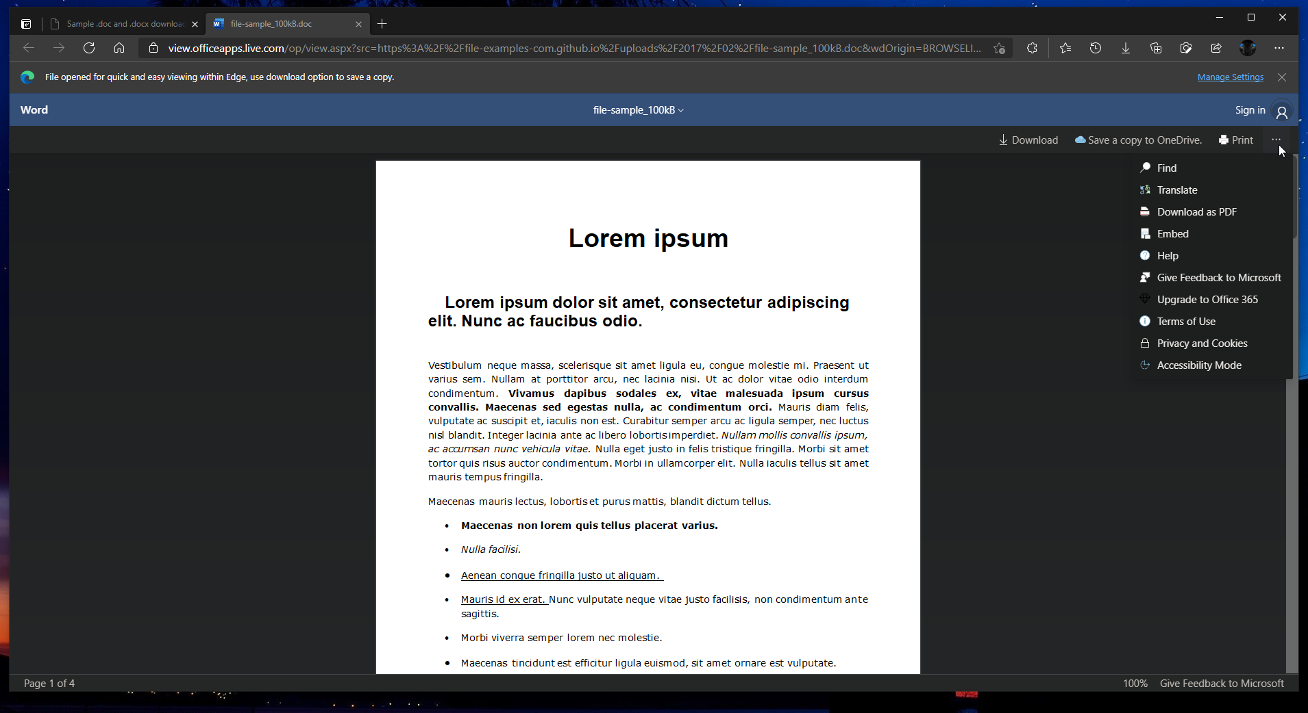 After the toggle has been enabled you can view the Office files without downloading them. When you will click on the file from the web it will open the office file in a new tab where you can view it. The new tab will view the file and will also give you an option to download the file in case you want to save it in your local storage or your One Drive if it is very important. It also will show you an option to print the file pages directly from the web making the user’s life easier. It is basically like a PDF file that opens in the browser which you can download and print as well.